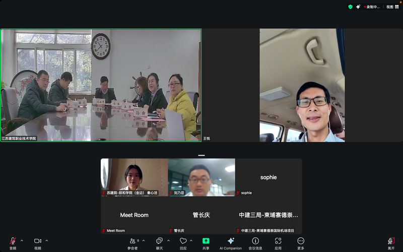 2月21日,我校与中建三局在线召开了柬埔寨“郑和学院”海外校企合作工作推进会,党委副书记、校长沈士德和中建三局马来西亚公司书记王悦出席会议,金边项目总经理姚德舜、中建三局海外项目人力资源部及宣传部门工作人员及我校国际合作与交流处、建筑建造学院、智能制造学院等部门负责人和驻柬埔寨金边郑和学院教师代表在线参会。