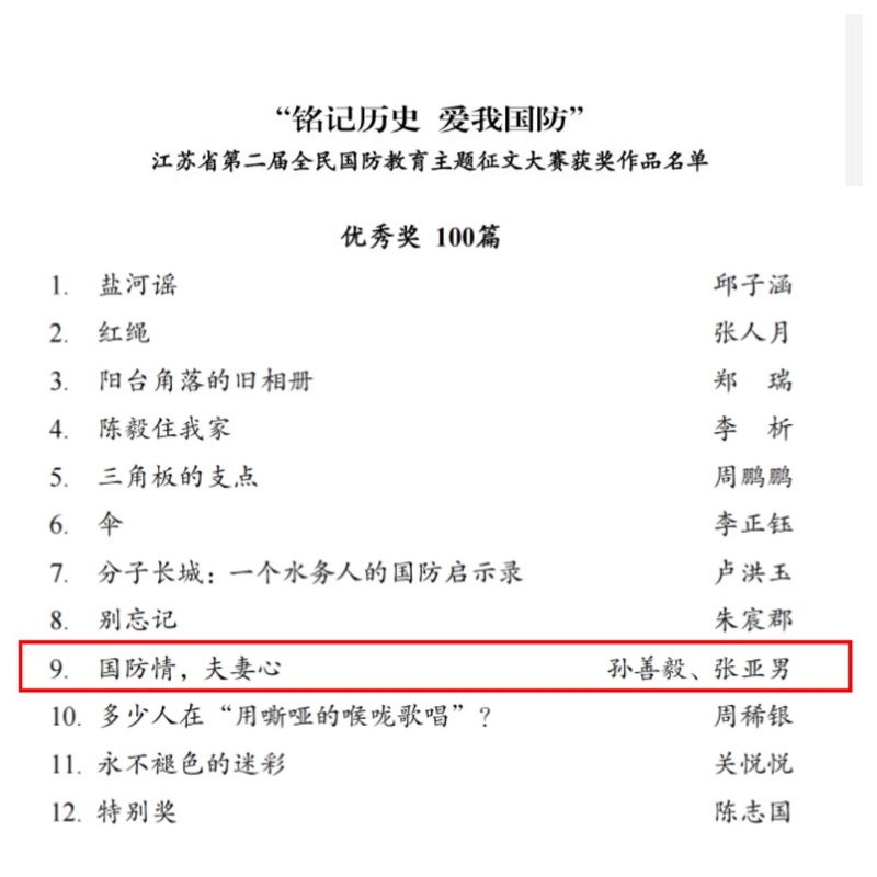 近日,由省委宣传部、省教育厅等多部门联合主办的第二届全民国防教育主题征文大赛公布结果,我校信电工程学院教师孙善毅的作品获优秀奖。据悉,此次比赛有逾四万篇投稿,共评选出优秀作品430篇。